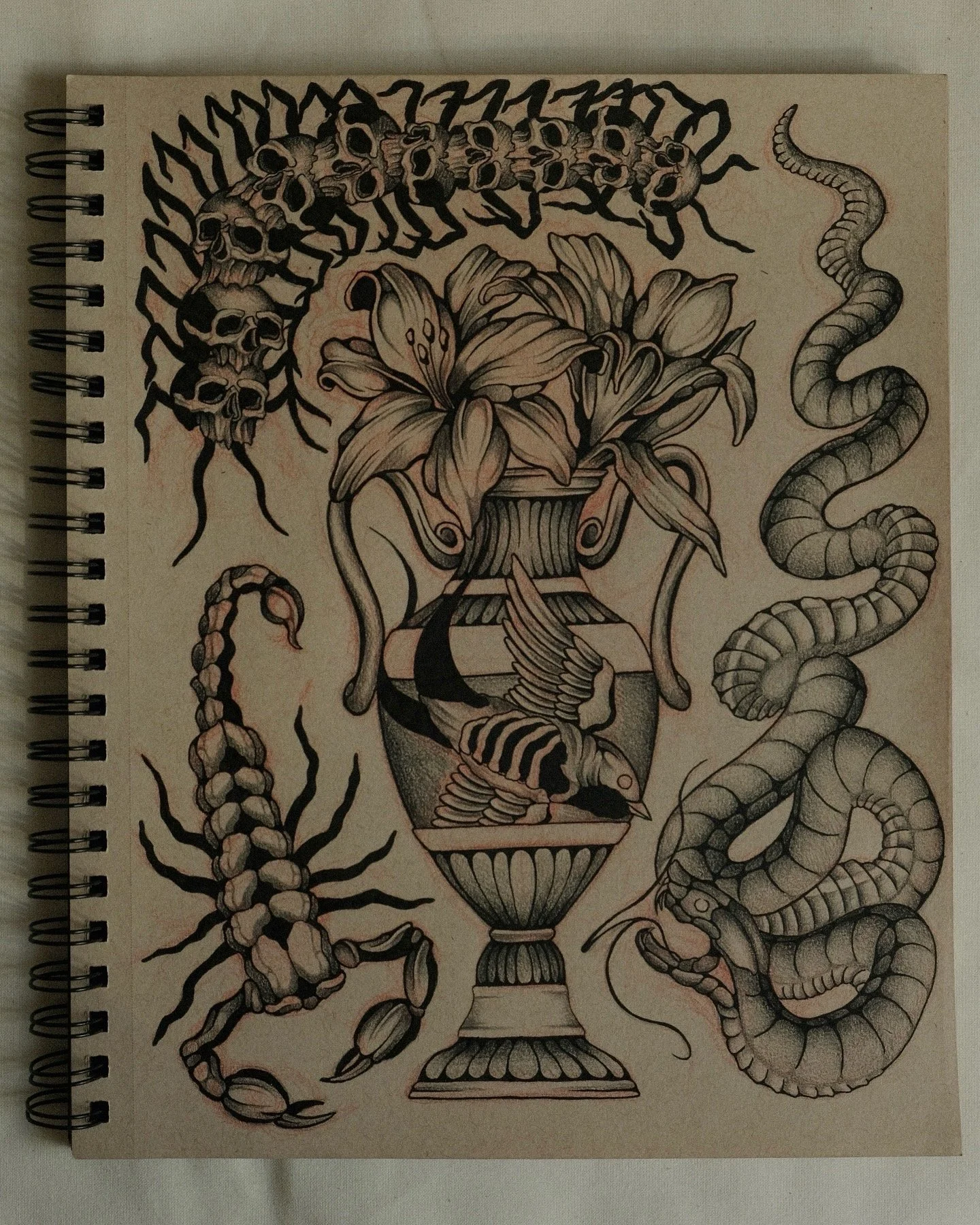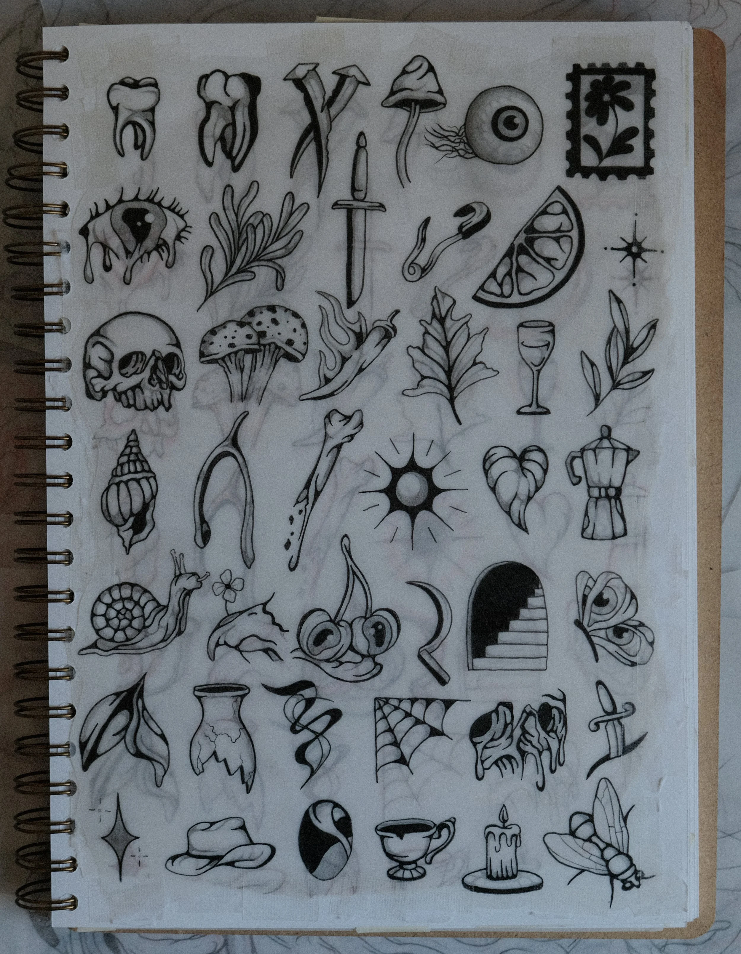 Click on an image to enlarge and have a closer look. This flash book is a collection of ideas, workings, and finished skin markings all mashed into one. Everything you see can be used - if it has been done already it can be redrawn or recreated to be unique to you. If something stimulates an altogether new idea for you, I would love to hear it. Custom work and the creation of something from a shared idea is so welcomed.